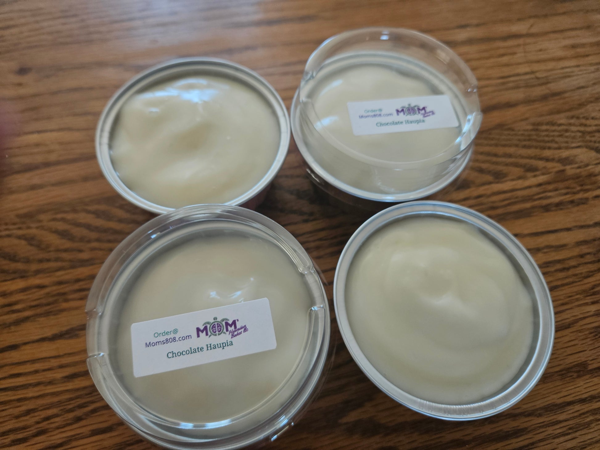 Crumbled shortbread cookie with a layer of chocolate and topped off with haupia (coconut)