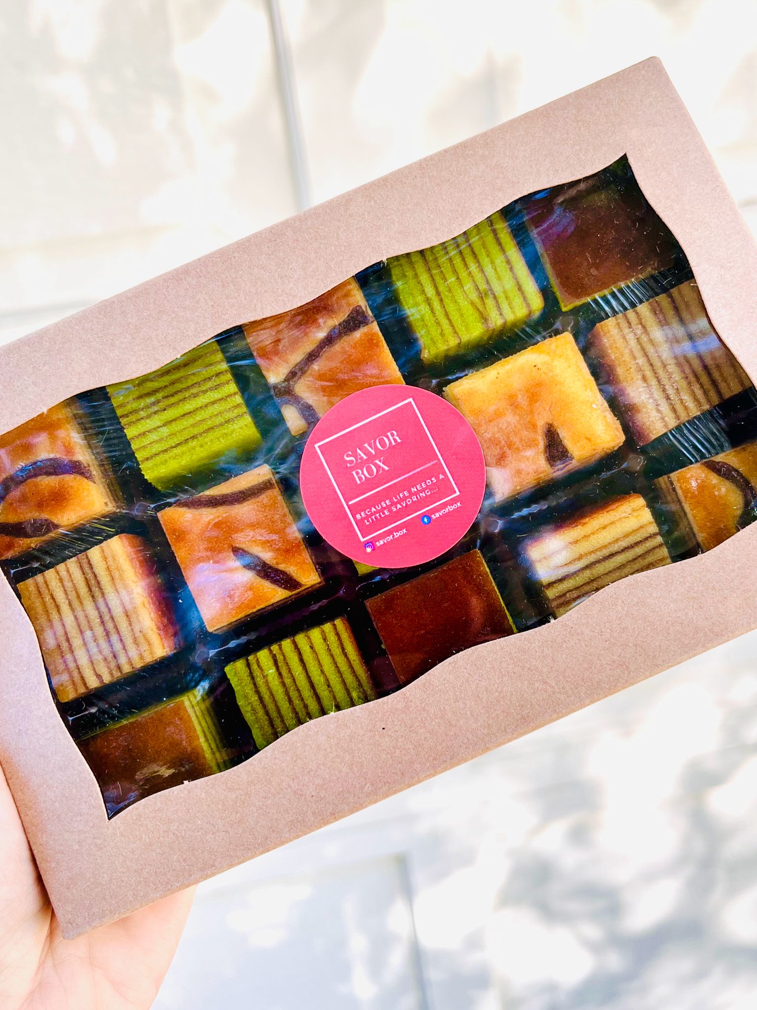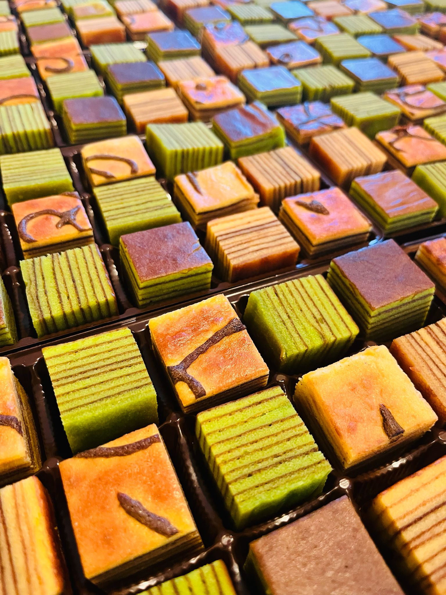 Our signature bite size lapis legit cake, 15 pcs in the box. Each piece is ~1x1x1 inch.